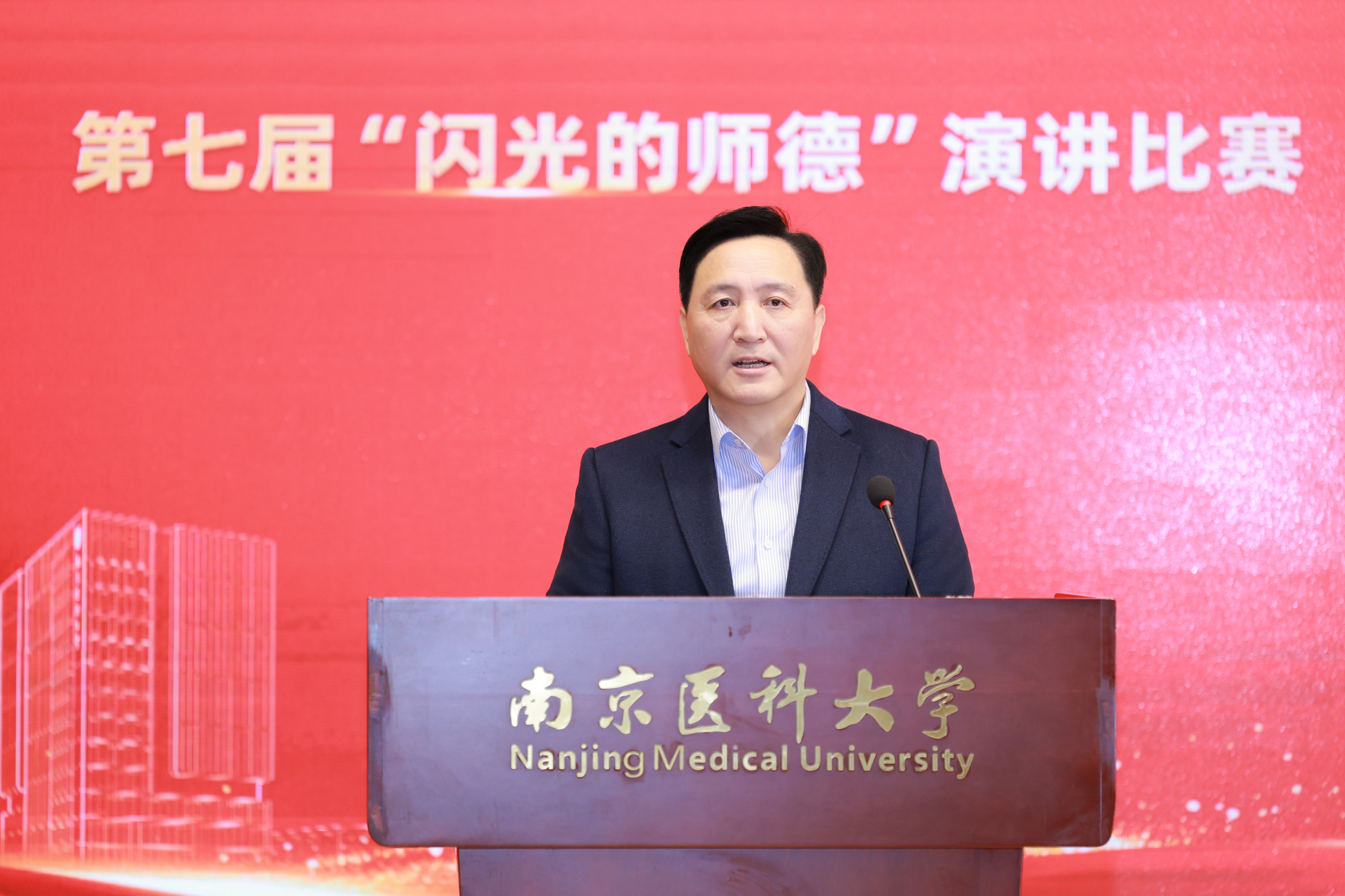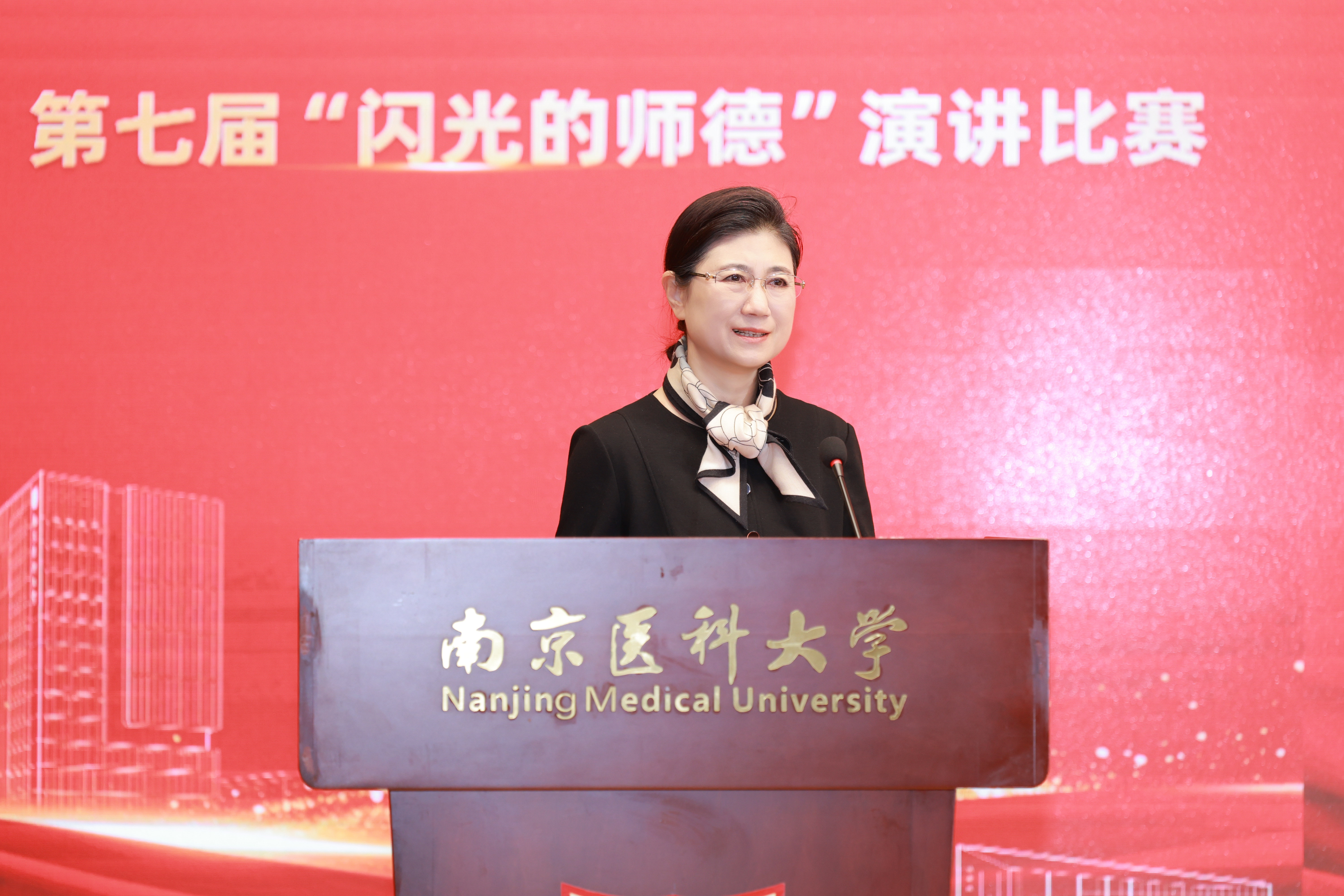 11月21日上午,我校第七届“闪光的师德”演讲比赛在至诚楼报告厅举行。校党委书记兰青,党委副书记徐珊,党委常委、副校长沈瑞林,党委常委、副校长岳国峰,党委常委、纪委书记、江苏省监委派驻南京医科大学监察专员李坚,党委常委、宣传部部长王春晖,党委常委、组织部部长、统战部部长孙波,教师代表、全国模范教师高兴亚,相关职能部门负责人出席并担任决赛评委。学校中层干部、思想政治理论课教师、辅导员、教师、学生代表参加活动。比赛由校党委副书记徐珊主持。